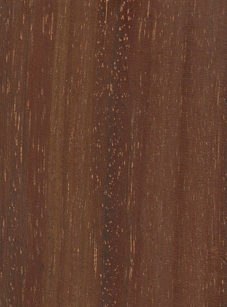 Color/Appearance: Heartwood is a dark reddish or violet brown. Pores contain light-colored mineral deposits which form small but conspicuous streaks throughout the wood. Sapwood is a pale pinkish white, with a gradual transition zone between the heartwood and sapwood.